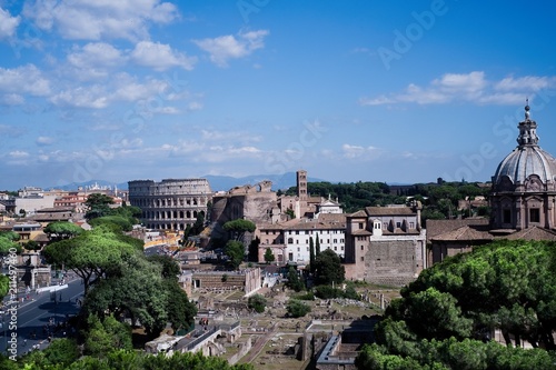 Naklejka premium View of the city of Rome, Italy, with the Colosseum