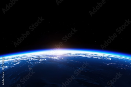 Obraz premium View of the Earth from Space with Sunrise and Blue Glow on the Horizon