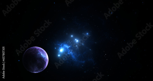 Fototapeta premium View of the Earth, star and galaxy. Sunrise over planet Earth, view from space.