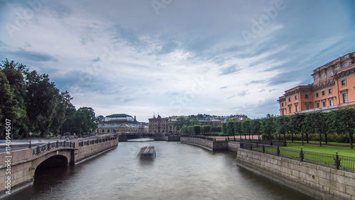 Naklejka premium View of the Embankment of the river Moyka and Mikhailovsky Castle timelapse...