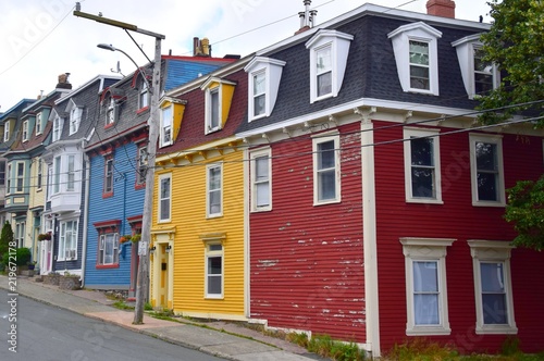 Naklejka premium view of the facades of colourful row houses, Newfoundland Canada