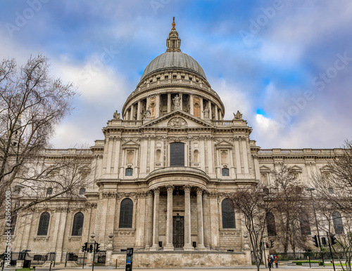 Obraz premium View of the famous St. Paul's Cathedral in city center on a cloudy day in London, England