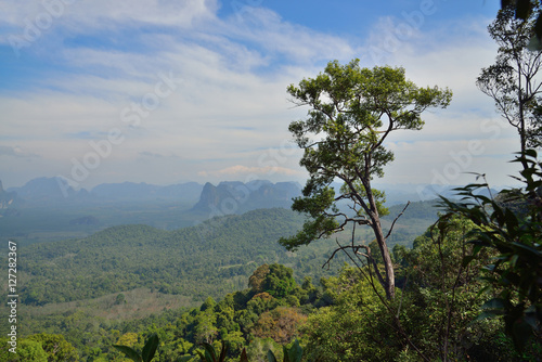 © SergeyCash, Obraz premium View of the Fields and Mountains in Thailand from high Top