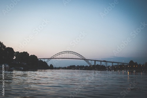 Fototapeta premium View of the Fredrikstad bridge seen from the water in Fredrikstad, Norway