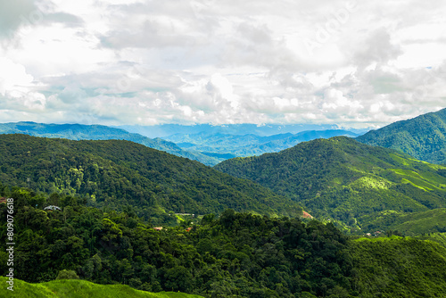 © Chalearmrat, Naklejka premium View of the green mountains at Thailand.