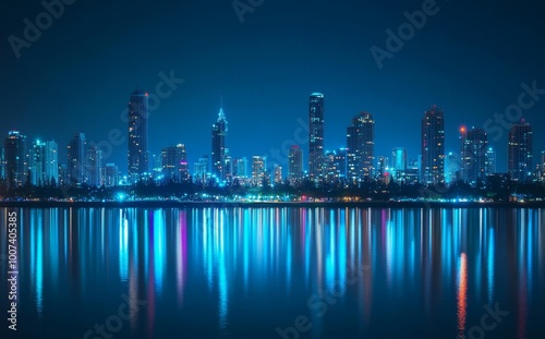 Fototapeta premium View of the high rise buildings lit up at night at Surfers Paradise across the water