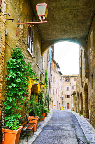 © Javen, Fototapeta premium View of the historic cityscape in San Gimignano, Tuscany, Italy.