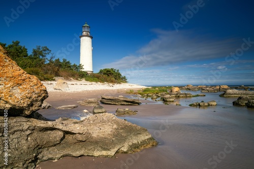 © makasana photo, Fototapeta premium view of the historic Faro Lighthouse on the Swedish island of Faro in the Baltic Sea