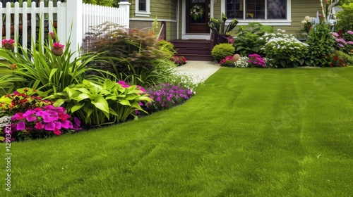 © Suradiman, Naklejka premium view of the house decorated with lawn and flowers