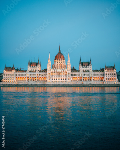 Fototapeta premium View of the Hungarian Parliament Building from across the Danube River in...