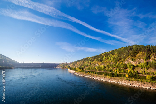© evgenii_v, Fototapeta premium View of the hydroelectric dam on the Yenisei River