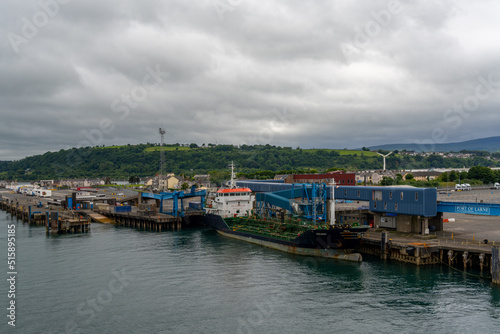 Fototapeta premium view of the industrial port and ferry harbor of Larne on the coast of Norther...
