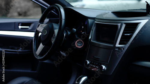 Fototapeta premium View of the interior of a modern automobile showing the dashboar