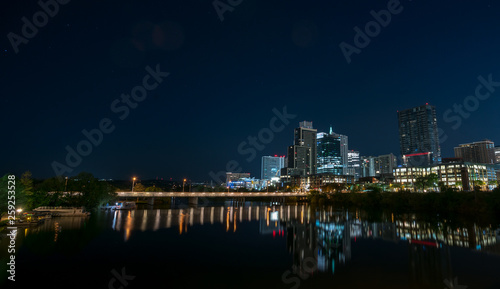 © porqueno, Fototapeta premium View of the Lamar Ave Bridge With Downtown Austin in the Background at Night