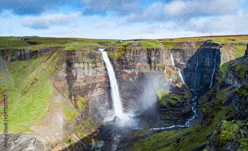 © elroce, Fototapeta premium View of the landscape of the Haifoss waterfall in Iceland. Nature and adventure concept background.