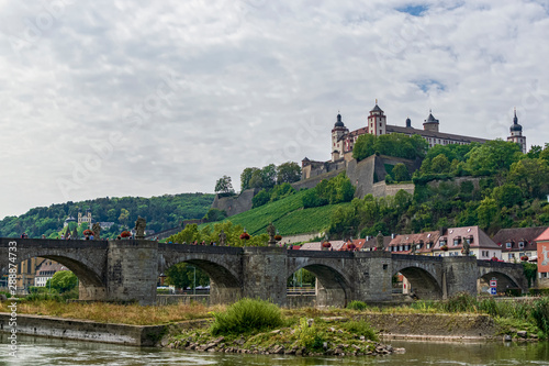 Fototapeta premium View of the Marienberg fortress and the old city bridge from the banks of the...