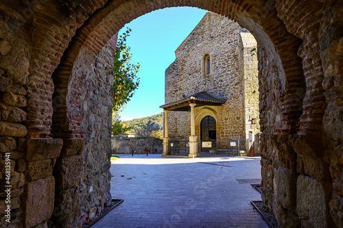 © josemiguelsangar, Naklejka premium View of the medieval church from the gate of the arched wall. Buitrago de Lozoya Madrid.