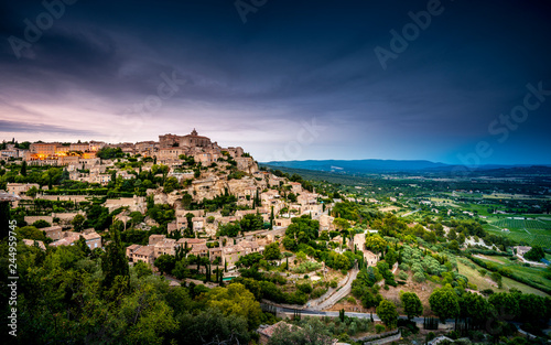 Fototapeta premium View of the medieval town of Gordes at dusk, Luberon, South of France