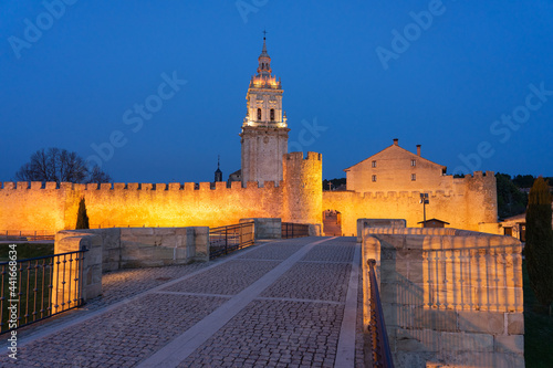 © JoseLuis, Fototapeta premium View of the medieval village of Burgo de Osma, the walls and the cathedral tower illuminated at night, Soria, Castilla y León, Spain.