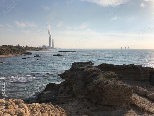 Fototapeta premium view of the Mediterranean sea, panorama in Caesarea Israel