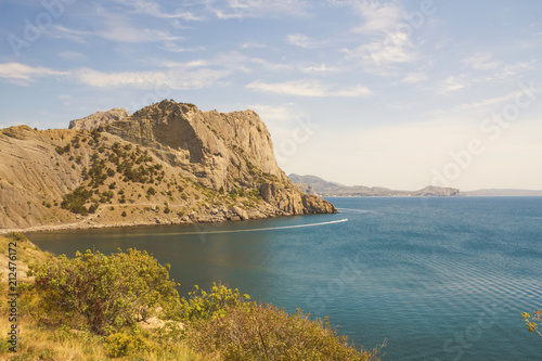 Fototapeta premium View of the mountain, the Bay on the Black sea and the mountains in the distance, on the horizon.