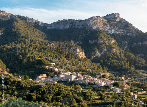 Obraz premium View of the mountain village of Estellencs, in Sierra de Tramuntana,...