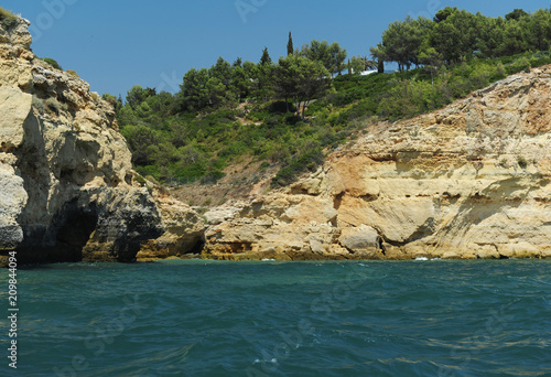 © Nadezda Ledyaeva, Fototapeta premium View of the mountains from the sea