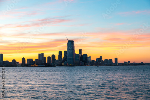 © porqueno, Fototapeta premium View of the New Jersey Silhouette During a Clear Sunrise