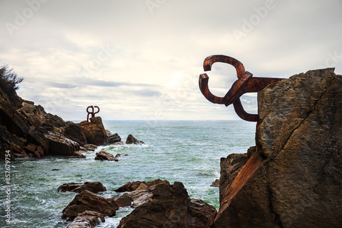 © Mauricio O., Fototapeta premium View of the ocean and the sculpture Peine del viento in the shore of San Sebastian