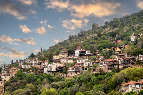 Fototapeta premium View of the old city of Alanya and the castle walls at sunset