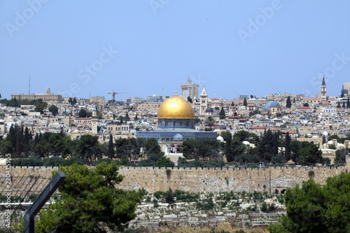 © Elroi, Obraz premium view of the old city of Jerusalem in Israel with an olive mountain. the golden dome of the Moslem mosque