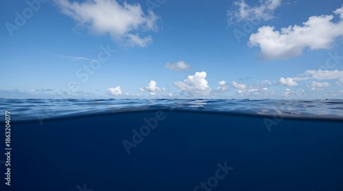 © Studicon, Fototapeta premium View of the open ocean shows the horizon line and white clouds