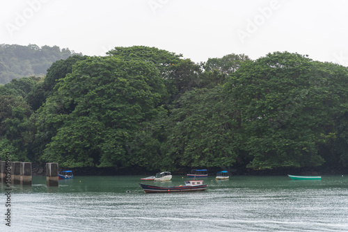 © Mariusz, Fototapeta premium View of the Panama Canal's entrance with lush, green riverbanks.