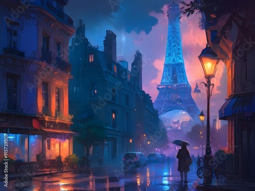 © Fairly, Naklejka premium view of the paric city an rain day.