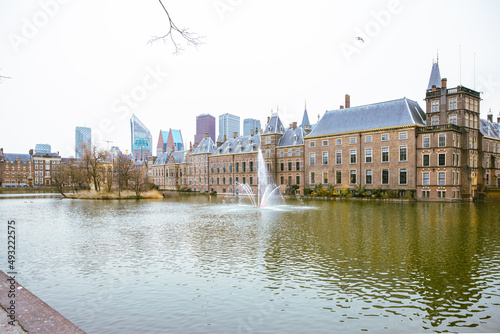 Obraz premium view of the pond in front of the parliament buildings in The Hague