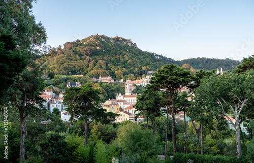 Obraz premium View of the Portuguese town of Sintra with the Moorish fortress on the hilltop above the city