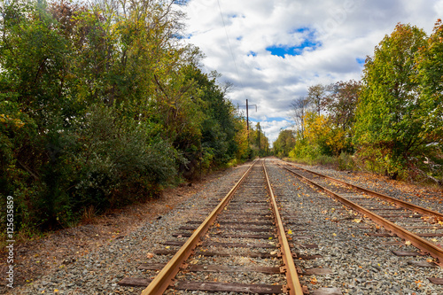 Fototapeta premium View of the railway receding into the distance through the trees.