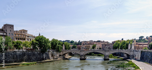 Fototapeta premium View of the river Arno and the Vittorio Emanuele II bridge, from the bridge of San Angelo. With a magnificent blue sky
