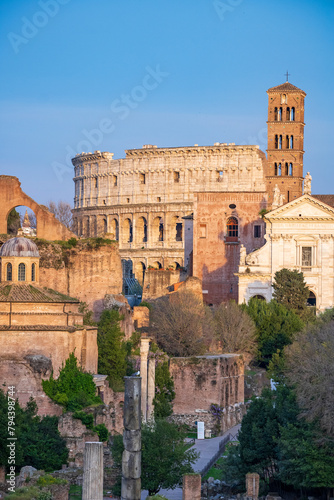 Obraz premium View of the Roman forum with the Colosseum in the background
