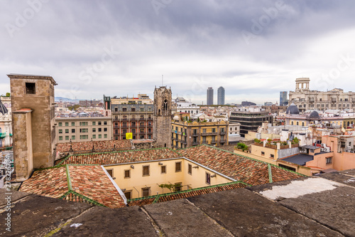 © emiliano, Obraz premium View of the roofs of Barri Gotic from the Cathedral terrace. Barcelona.