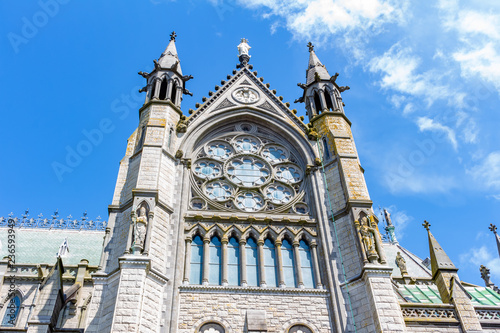 Naklejka premium View of the rosette of St Colman's Cathedral, in the city of Cobh, Ireland