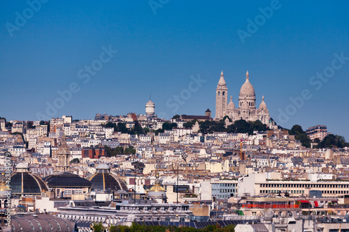 Fototapeta premium View of the Sacré-Cœur next to Saint-Pierre de Montmartre on the summit of...