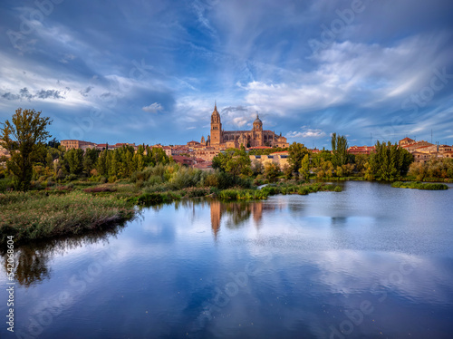 Fototapeta premium View of the Salamanca cathedral reflected in the Tormes river