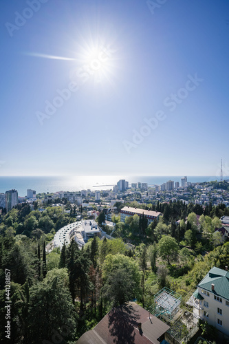 Fototapeta premium View of the sea and the houses of the city of Sochi.