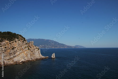 Naklejka premium View of the sea and the mountainous coast in the Crimea near the Swallow's Nest.