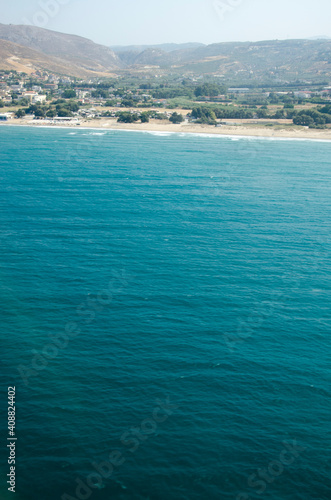 © Hana, Fototapeta premium view of the sea coast from the airplane