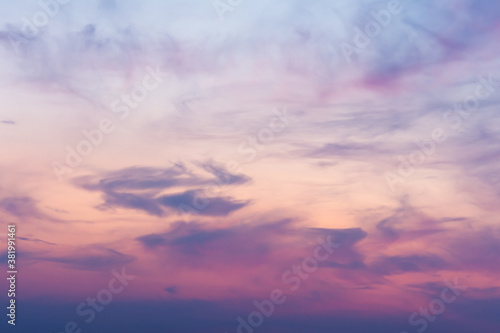 Obraz premium View of the sky in the evening at sunset with a dark cloud and a bright pink...