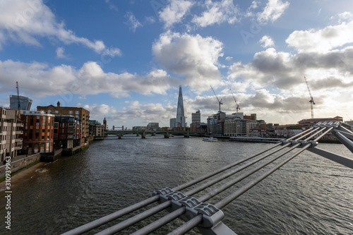 Naklejka premium View of the south bank of river Thames with the Millennium Bridge in the...