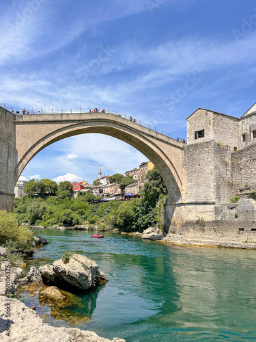 © lensismoore, Obraz premium View of the Stari Most from the Rivers Edge