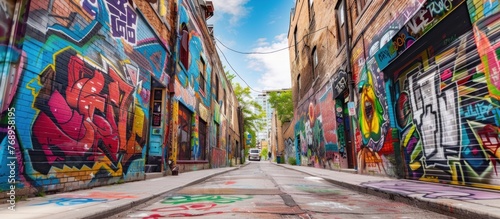 Naklejka premium view of the street and graffiti on the walls of houses in the city of Toronto